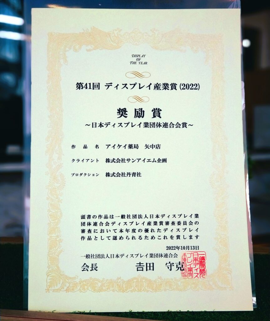 2022年度ディスプレイ産業賞、日本サインデザイン賞、日本空間デザイン賞にて、それぞれ賞を頂きました。