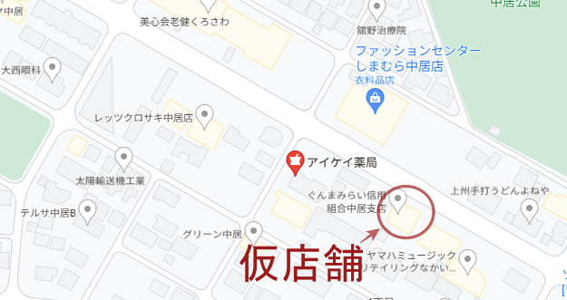 アイケイ薬局中居店は、店舗リニューアル工事のため、2023年7月3日(月)~2024年4月30日(火)までの間、仮店舗にて営業させていただきます。仮店舗は現店舗の東側の「ぐんまみらい信用組合」の建物になります。皆様には大変ご不便をおかけ致しますが、何卒ご理解の程よろしくお願い申し上げます。