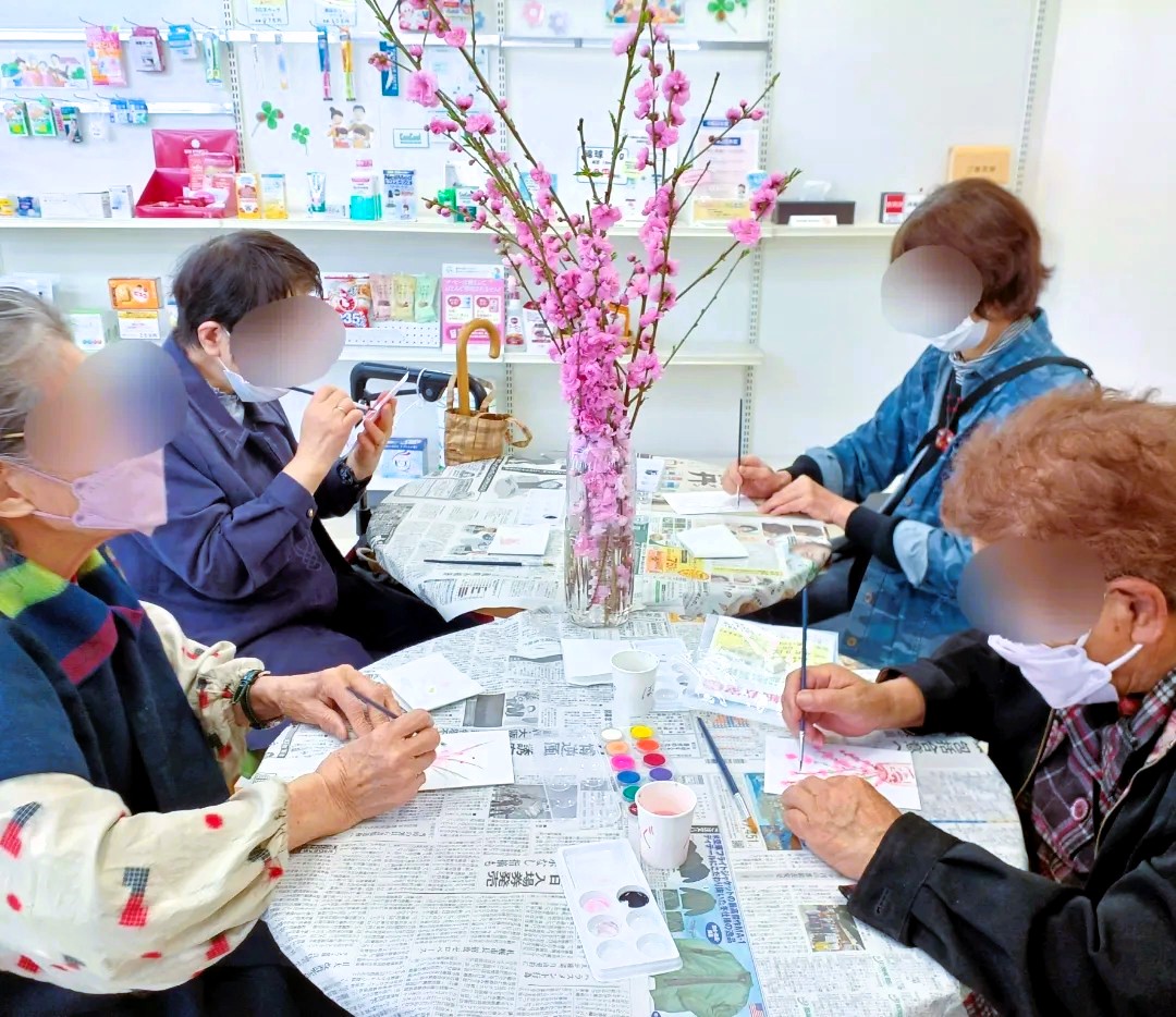 4月3日(水)に絵手紙教室を行い、4名の方にご参加いただきました。テーマは「春の花」庭に咲いていた桃の花を持参しました。「お花がきれい」「描くのが難しいなぁ」とお話しされながら手際よく描いていました。とても素敵な作品が完成しました!店内掲示板に掲示させていただきます。