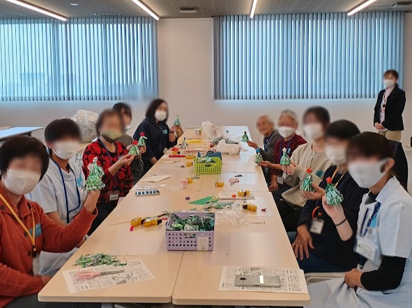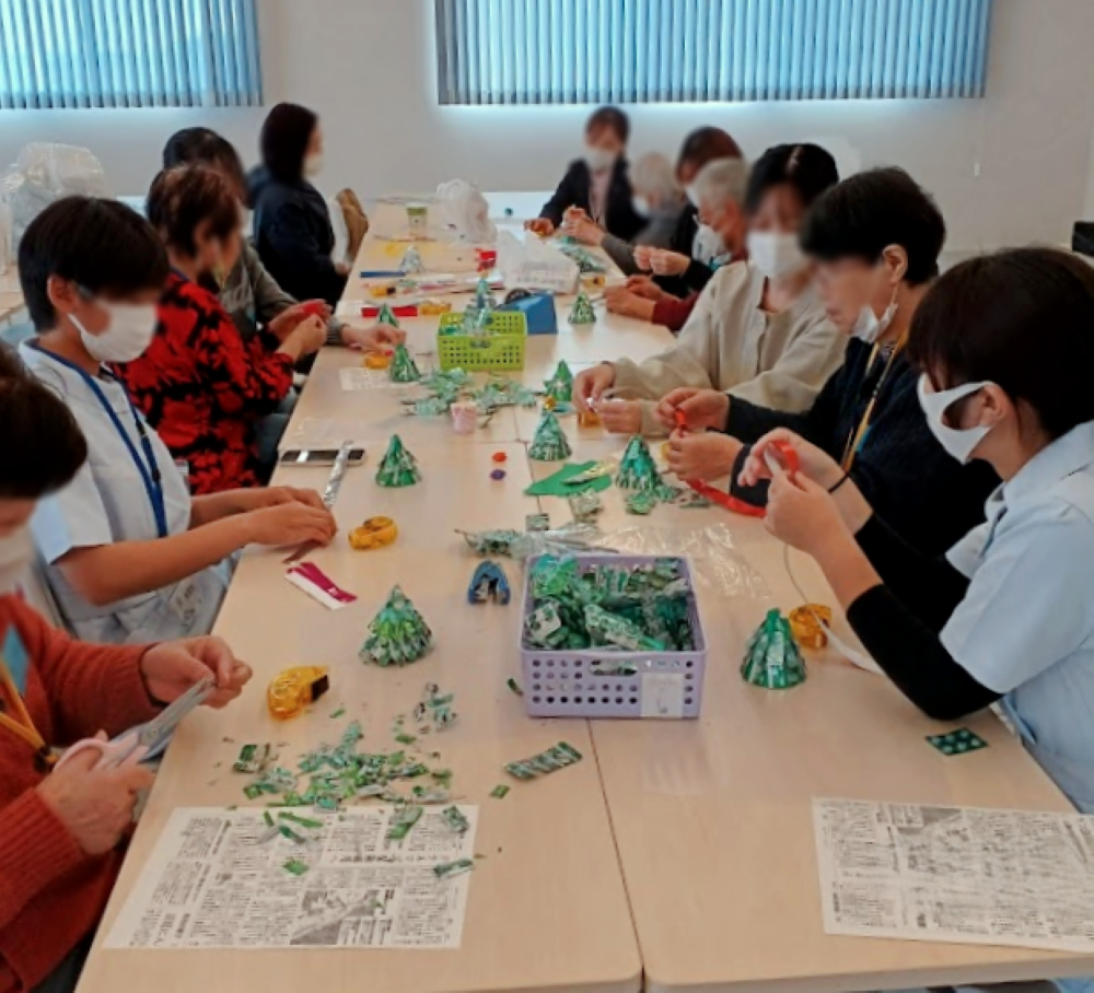 PTPシートの工作は二回目なので、手慣れた方もいて作業は順調に進みましたが、ツリーの上に付ける星の折り紙には皆さん苦戦していました。