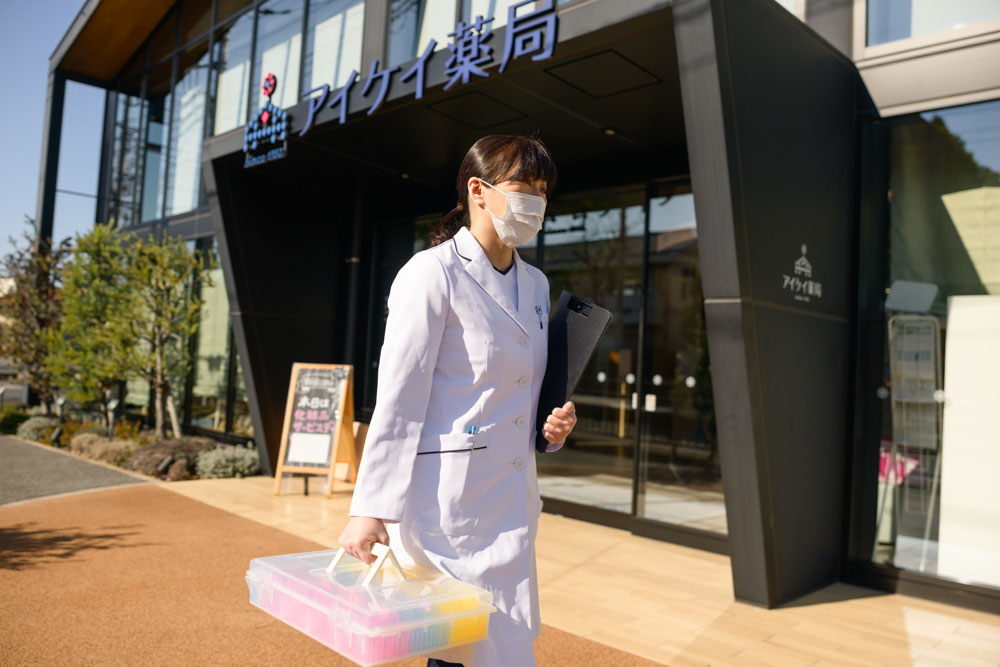 アイケイ薬局は、お薬をお渡しするだけの場所ではありません。飲み方が分からないとき、続けられるか不安なとき、お店まで来るのが難しいとき。そんな場合でも、安心して相談していただける薬局でありたいと考えています。