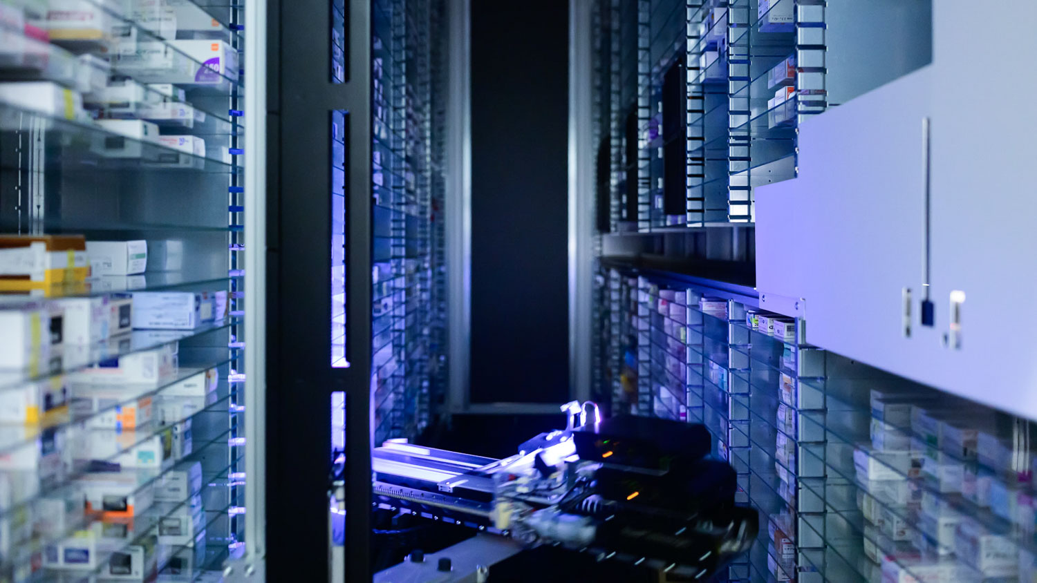 当薬局では、より安全で正確、そしてスムーズな調剤サービスを提供するために、最新の自動入庫・払出システム「BD Rowa™(ローワ)」を導入しています。ROWAは、薬剤の入庫・保管・払出を自動化する信頼性の高い調剤ロボットです。